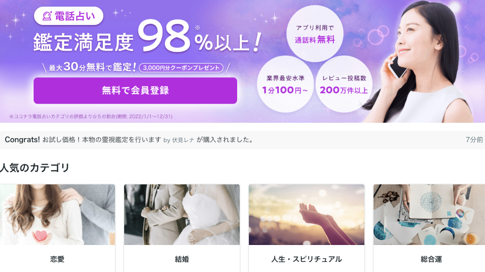 ココナラ電話占いの魅力と初回30分無料体験!TVCM放映で話題